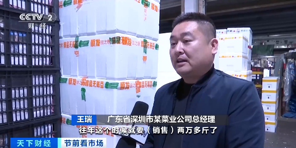 广东省深圳市某菜业公司总经理 王瑞:现在一天销售一万多斤,往年这个时候就要销售两万多斤了。